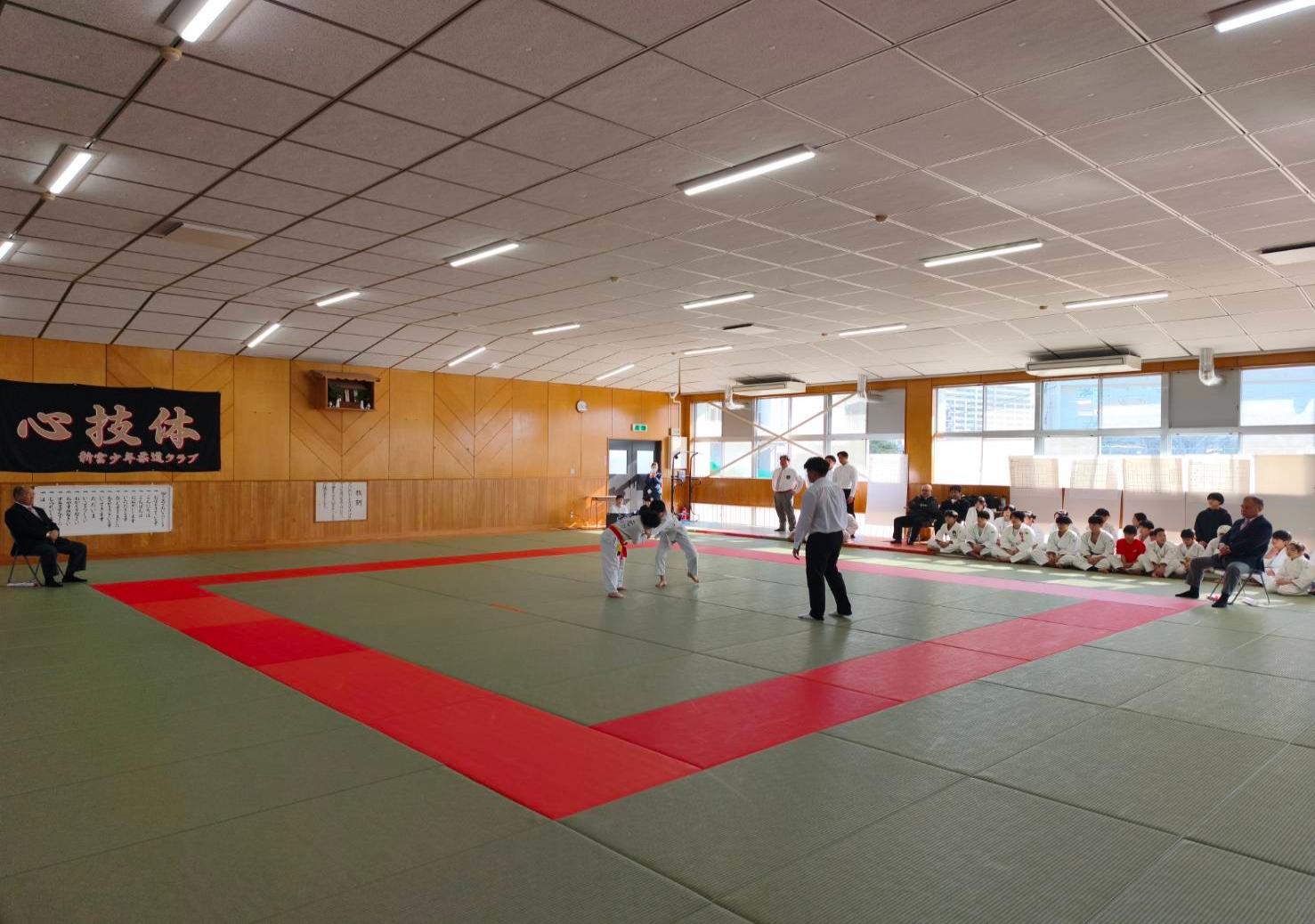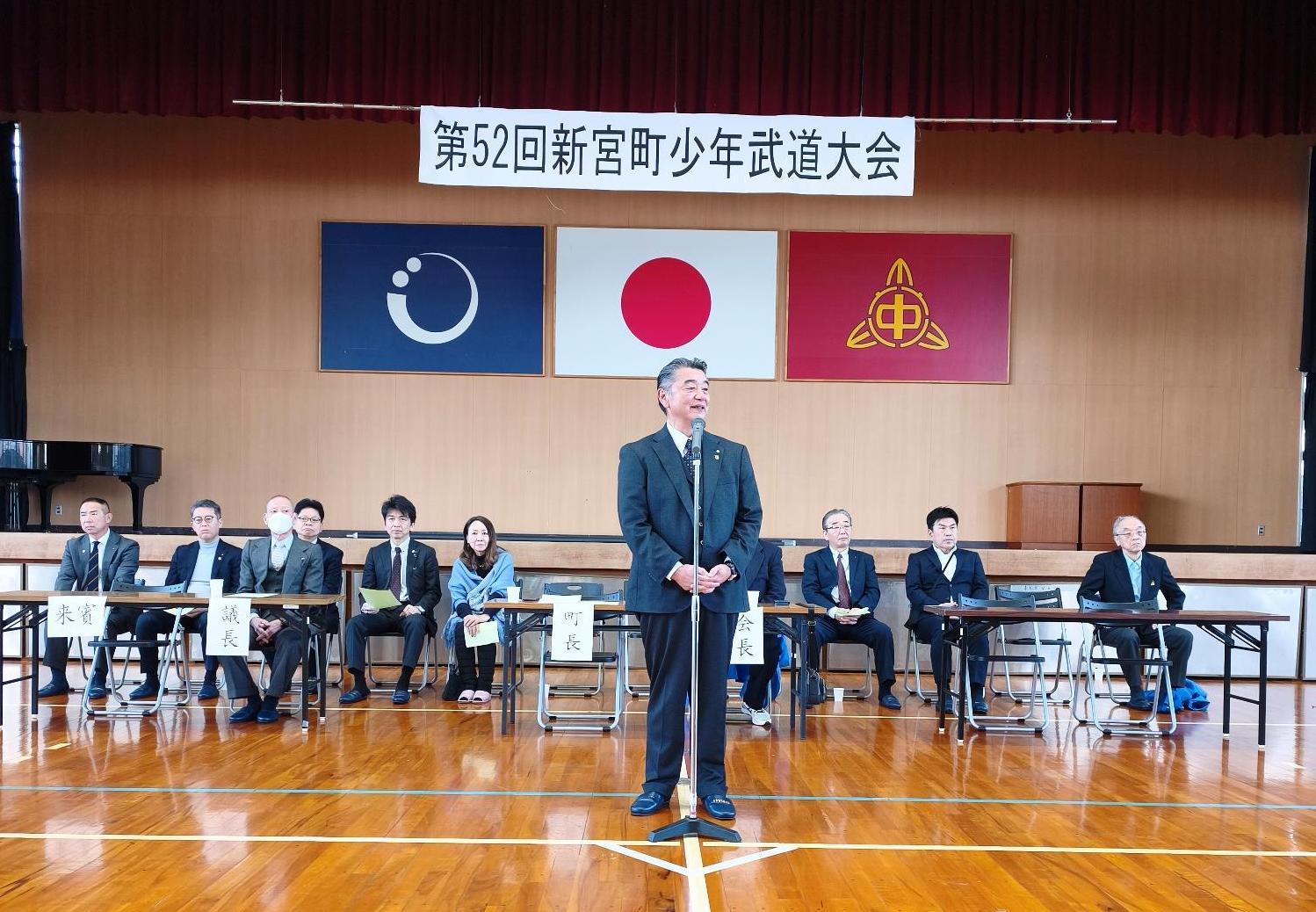 新宮町スポーツ協会主催「第52回新宮町少年武道大会」が、新宮中学校体育館および柔道場で開催されました。本大会には、新宮町内の小中学生を中心に多くの選手が参加し、剣道と柔道の日頃の稽古の成果を発揮されました。